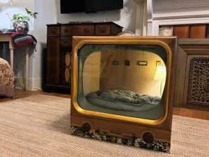 Elevate your interior with a mid century modern cat condo that prioritizes clean lines and walnut finishes. This design philosophy integrates the pet habitat as a piece of "human-grade" furniture, utilizing tapered legs and geometric silhouettes.