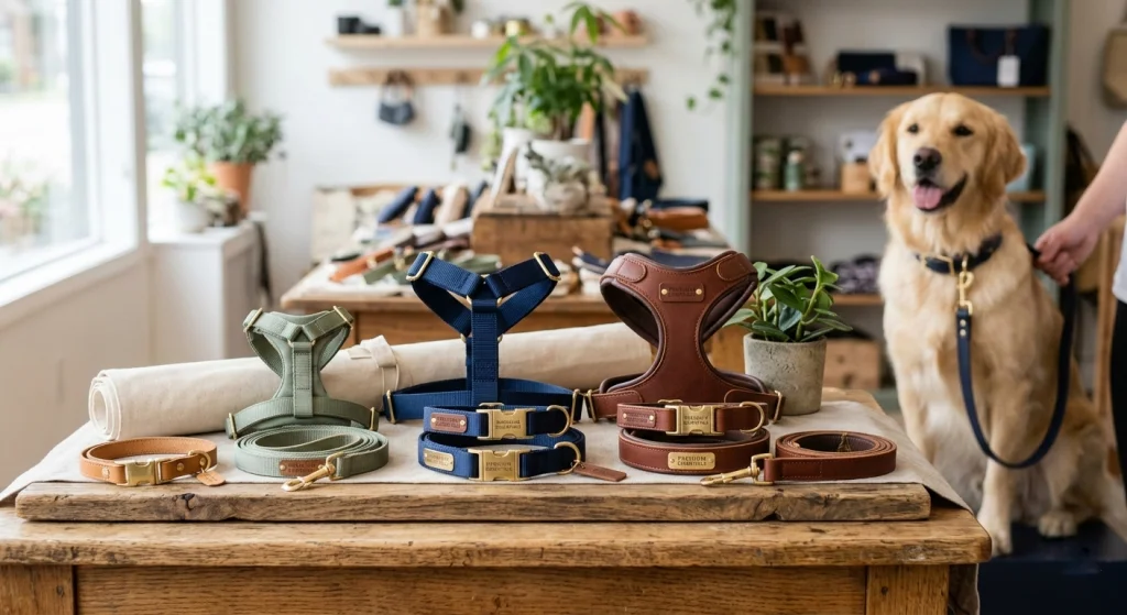 For masculine aesthetics, we recommend a dog collar and leash set male palette featuring Forest Green, Midnight Navy, or Tactical Coyote. Look for matte black hardware and rugged webbing textures that emphasize strength and bold, clean lines.