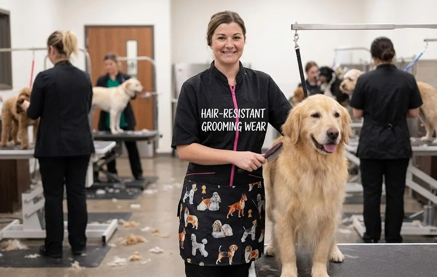 Modern hair-resistant dog grooming wear incorporates advanced anti-static nano-coatings that allow fur to slide off like flowing sand, fundamentally transforming the professional health and comfort experience for groomers.