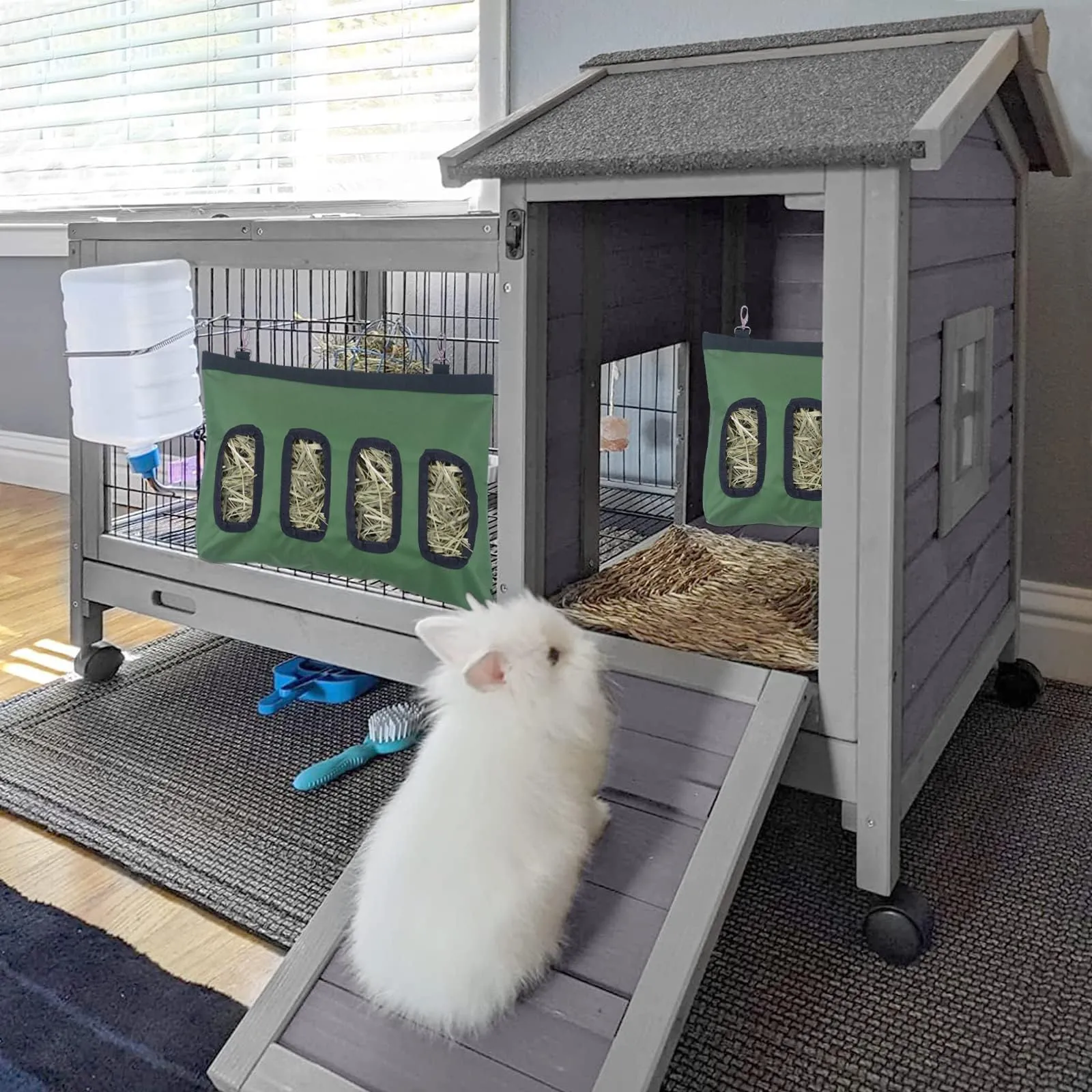 This small animal hay manger features a practical four-hole design that allows pets to pull out manageable amounts of hay, mimicking natural grazing. Its hanging design saves crucial floor space in cages or hutches, keeping the feeding area cleaner and more organized. Whether you call it a forage bag for lagomorphs, a cavy hay rack, or a tiny pet nourishment holder, this product delivers on its promise of durability, convenience, and pet health.