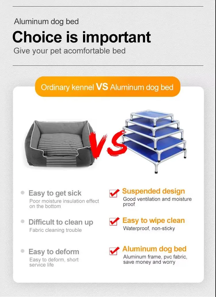 Designed for modern pet households and professional buyers, this elevated dog beds solution focuses on airflow management, humidity isolation, and structural stability. Unlike traditional floor-contact pet mats that trap moisture and odors, this raised sleeping system lifts pets away from cold or damp surfaces, creating a consistently dry and hygienic rest area.