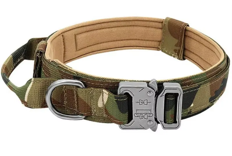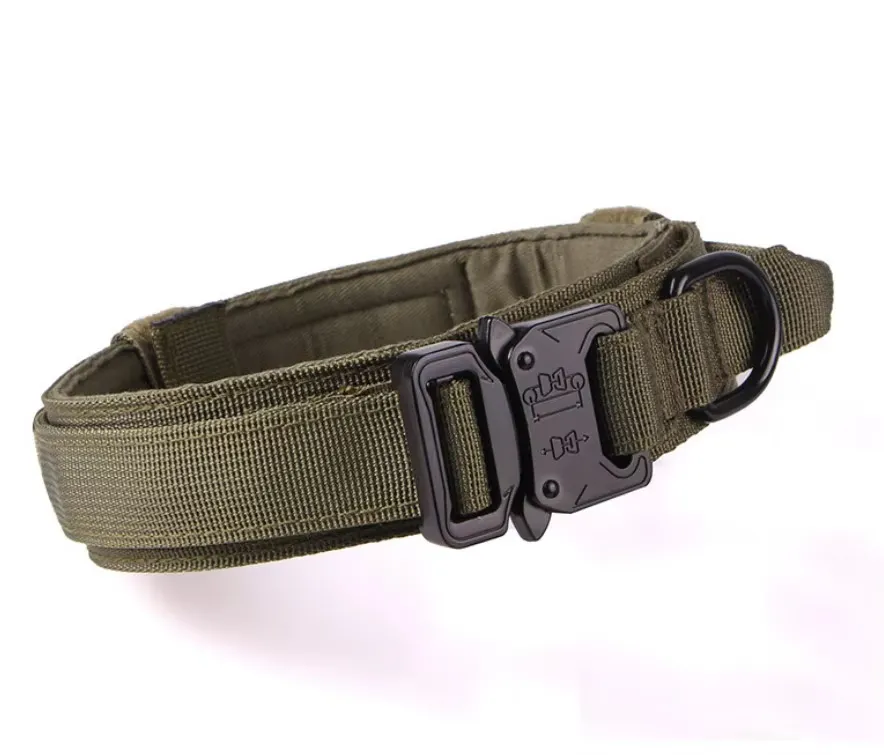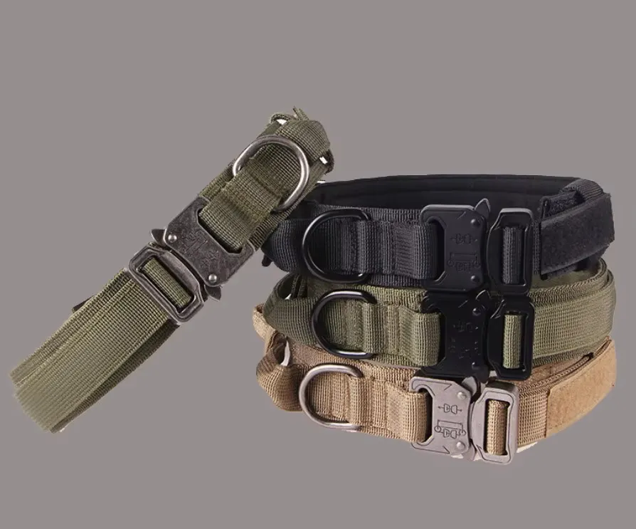 Our tactical dog collar combines high-quality nylon with a robust metal buckle, ensuring long-lasting durability. The nylon is thick yet flexible, providing comfort while resisting daily wear and tear, making it suitable for active dogs.