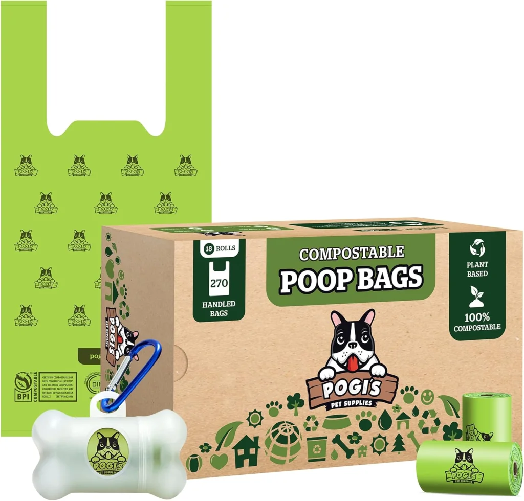 Pogi’s offers an oversized design ($9 \times 13.5$ inches), making them the preferred choice for owners of Great Danes or Mastiffs. They use plant-based materials and are remarkably easy to open, solving a common frustration with thinner, static-prone bags.